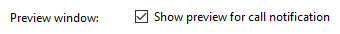 You can turn on or off the unobtrusive Preview window for all calls by ticking or clearing the appropriate box.